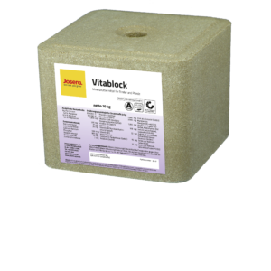 Der JOSERA Vitablock ist der optimale Leckstein für die Mineralfutterversorgung während der Aufzucht und Laktation